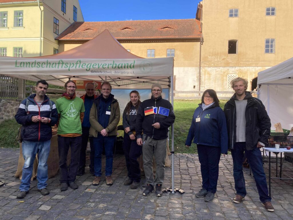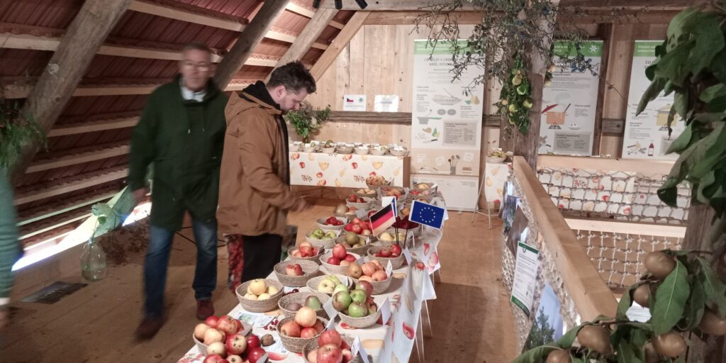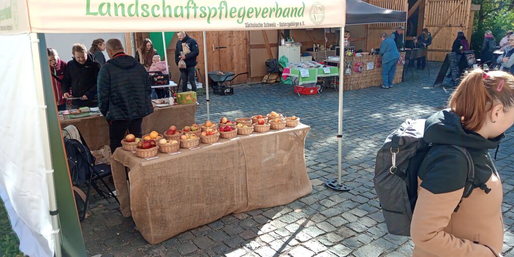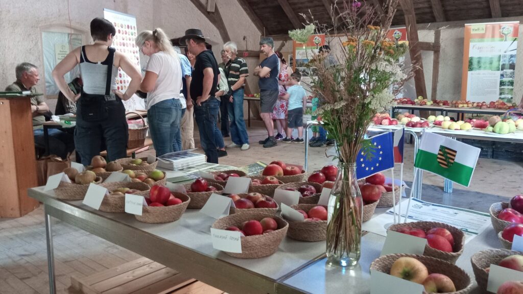 Slavnost proběhla za účasti českých partnerů projektu, kteří zde vystaviliovoce starých odrůd a podávali informace o záchraně ovocných alejí a sadů. U českého stánku bylo zajištěno tlumočení. Akci jsme podpořili zapůjčením roll-up plakátů. Dále jsme dodali vzorky ovoce z genofondových ploch našeho pozemkového spolku, které jsou zařazeny do přeshraničního projektu: