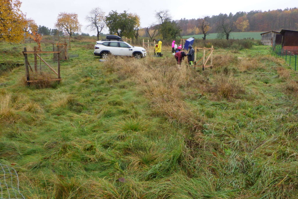 V neděli 2.11.2025 jsme v genofondové ploše: „Sad paní Jelínkové ve Švihově“ vysadili další třešně a višně. Počasí bylo pro sázení stromků naprosto ideální. Lilo jako z konve. Kořínky stromků určitě nenaschly, a zálivku po výsadbě jsme také nemuseli řešit. Snad už příští rok dosadíme poslední prázdné pozice.